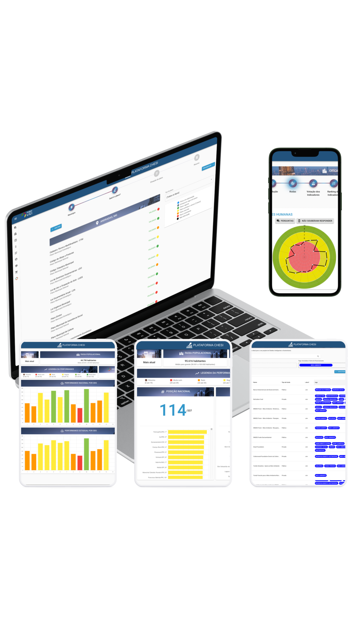 A Plataforma CHESI é a ferramenta digital que viabiliza a aplicação prática da metodologia. Ela organiza planos municipais, monitora indicadores alinhados aos ODS e conecta projetos a oportunidades de financiamento.